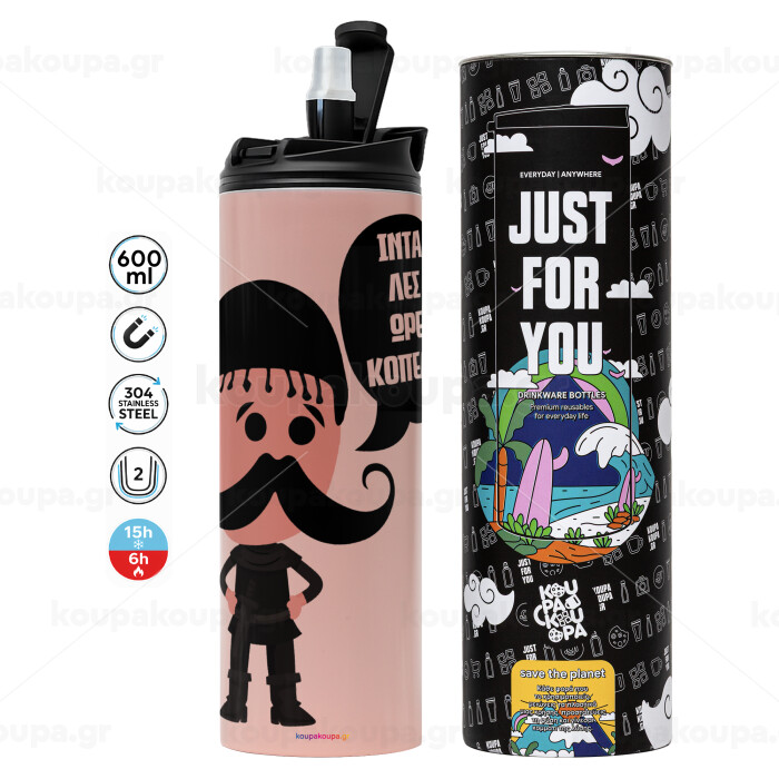 Κρητικός "Ίντα λες ωρέ κοπέλι", Tumbler stainless steel PINK 600ml