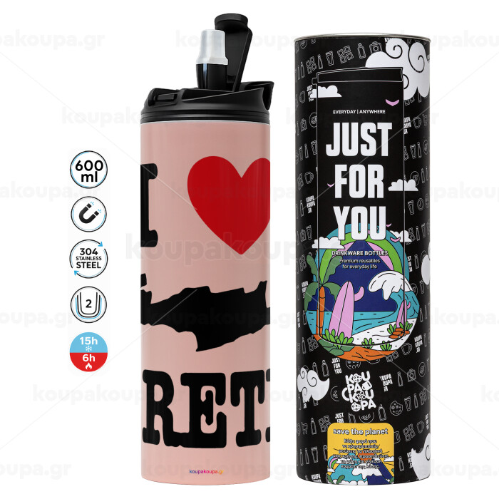 I Love Crete, Tumbler stainless steel PINK 600ml