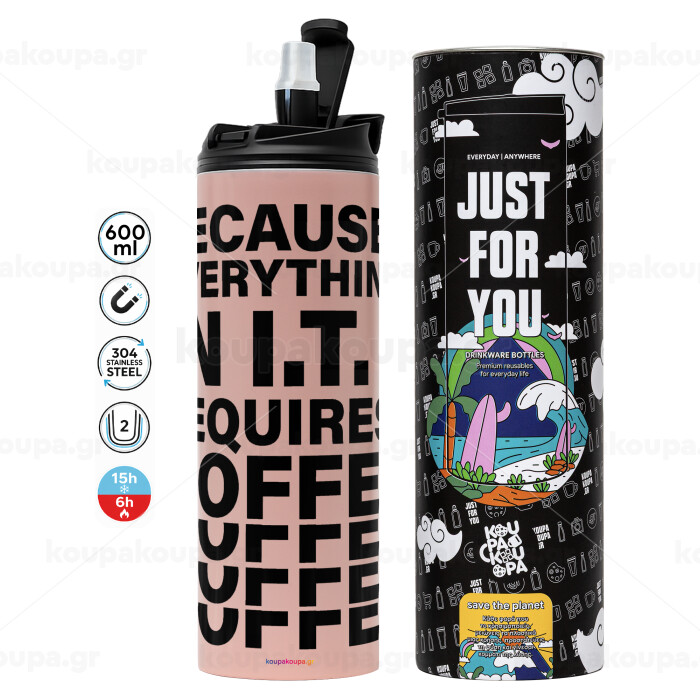 Because everything in I.T. requires coffee, Tumbler stainless steel PINK 600ml