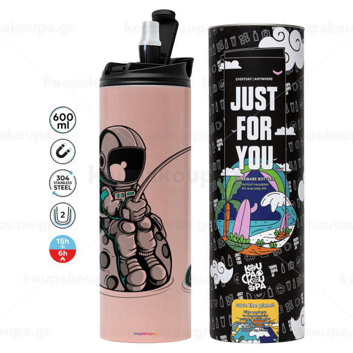 Little astronaut fishing, Tumbler stainless steel PINK 600ml