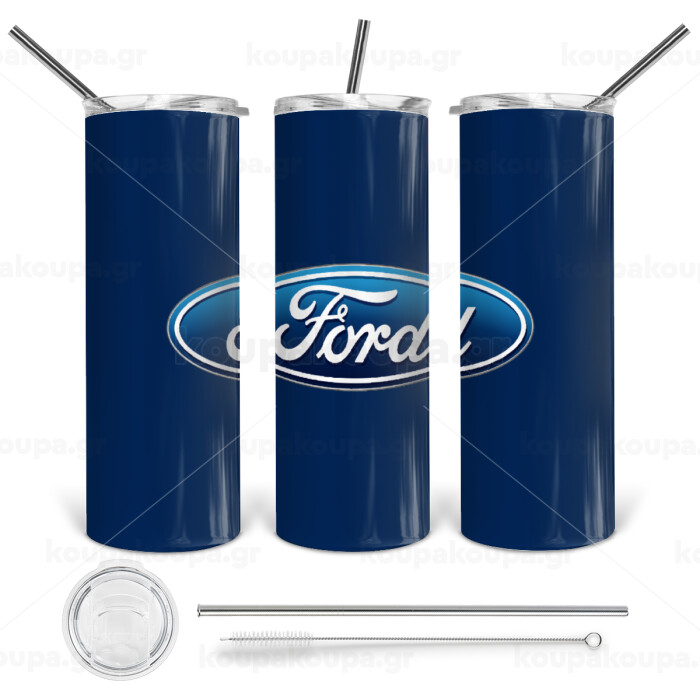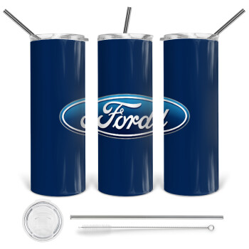 Ford, Tumbler stainless steel 600ml, with metal straw & cleaning brush