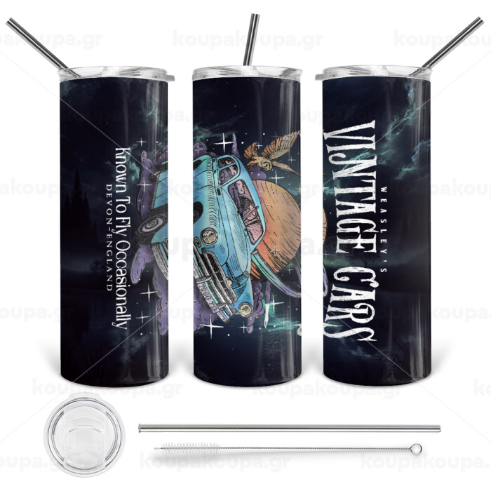 Wizard Flying Car, Tumbler stainless steel 600ml, with metal straw & cleaning brush