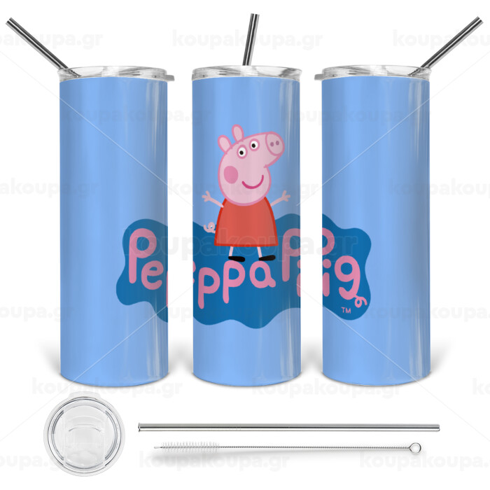 Πέππα το γουρουνάκι μπλε με όνομα, Tumbler stainless steel 600ml, with metal straw & cleaning brush