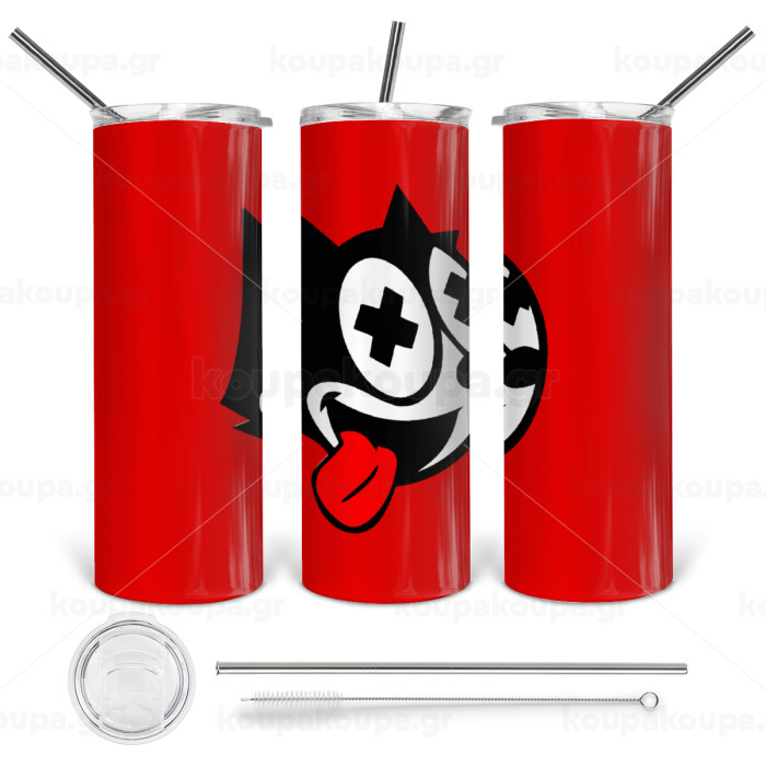 helix the cat, Tumbler stainless steel 600ml, with metal straw & cleaning brush