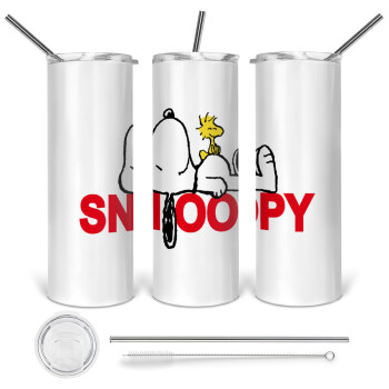 Snoopy sleep, Tumbler stainless steel 600ml, with metal straw & cleaning brush