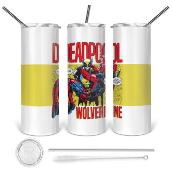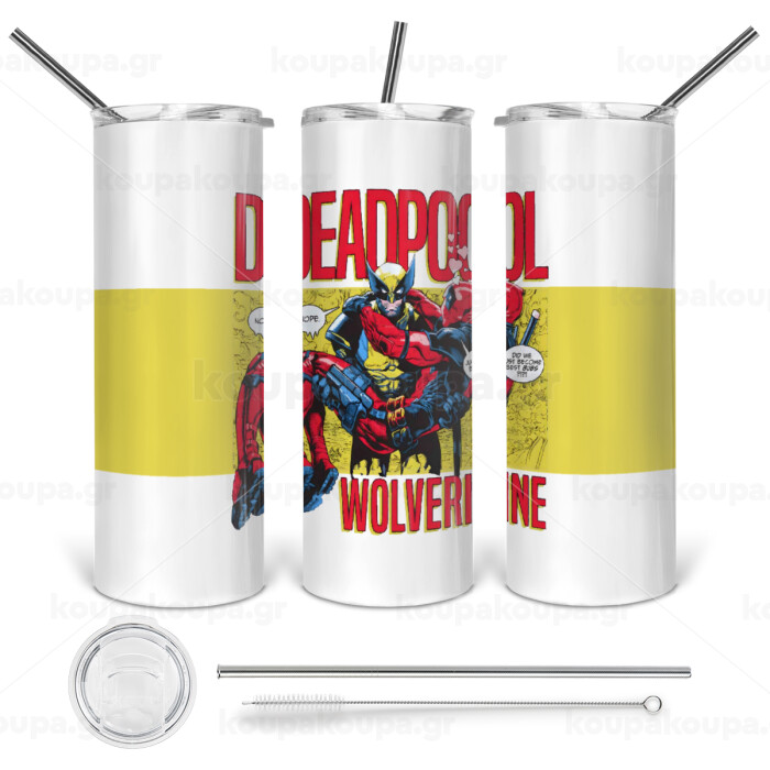 Superhero Deadpool Wolverine, Tumbler stainless steel 600ml, with metal straw & cleaning brush