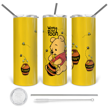 Winnie the Pooh, Tumbler stainless steel 600ml, with metal straw & cleaning brush