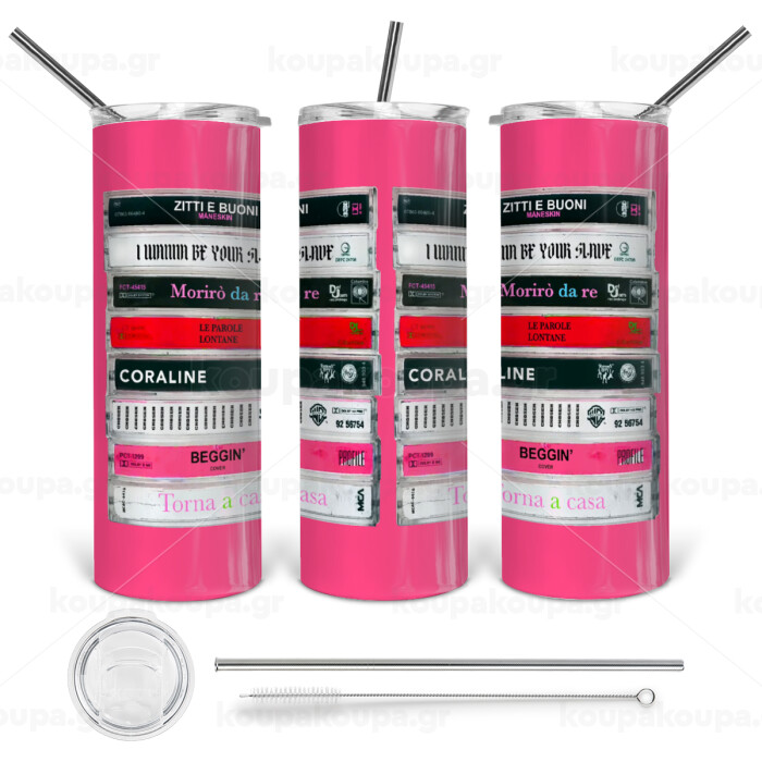 Maneskin Cassette, Tumbler stainless steel 600ml, with metal straw & cleaning brush