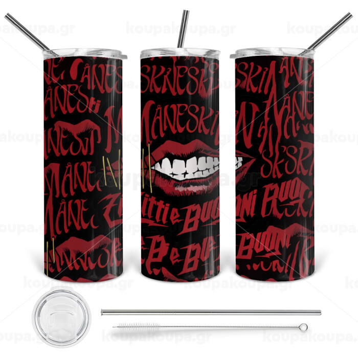 Maneskin lips, Tumbler stainless steel 600ml, with metal straw & cleaning brush