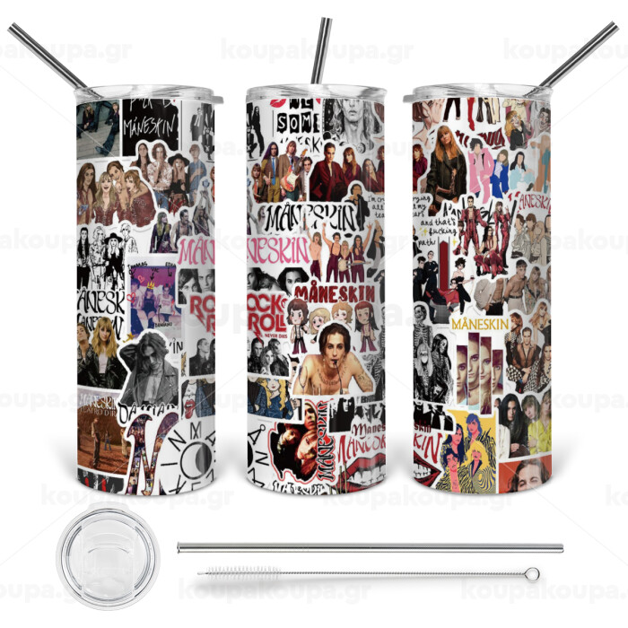 Maneskin stickers, Tumbler stainless steel 600ml, with metal straw & cleaning brush