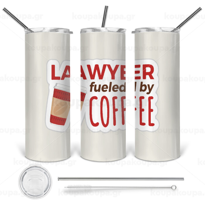 Lawyer fueled by coffee, Tumbler stainless steel 600ml, with metal straw & cleaning brush
