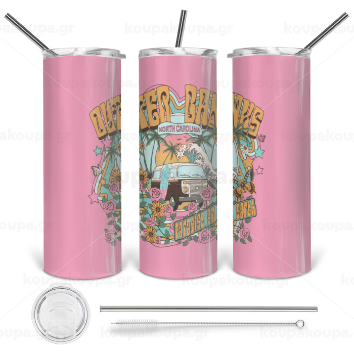 Outerbanks paradise on earth, Tumbler stainless steel 600ml, with metal straw & cleaning brush