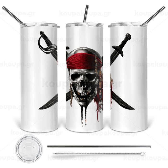 Pirates of the Caribbean, Tumbler stainless steel 600ml, with metal straw & cleaning brush