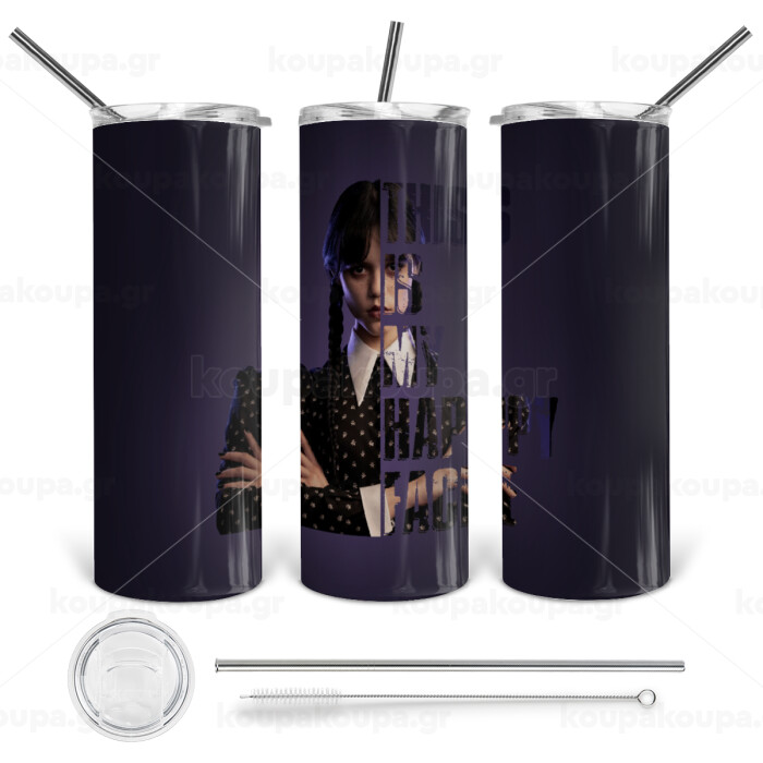 Wednesday, This is my happy face, Tumbler stainless steel 600ml, with metal straw & cleaning brush