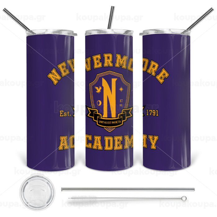 Wednesday Nevermore Academy University, Tumbler stainless steel 600ml, with metal straw & cleaning brush