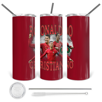 Cristiano Ronaldo, Tumbler stainless steel 600ml, with metal straw & cleaning brush