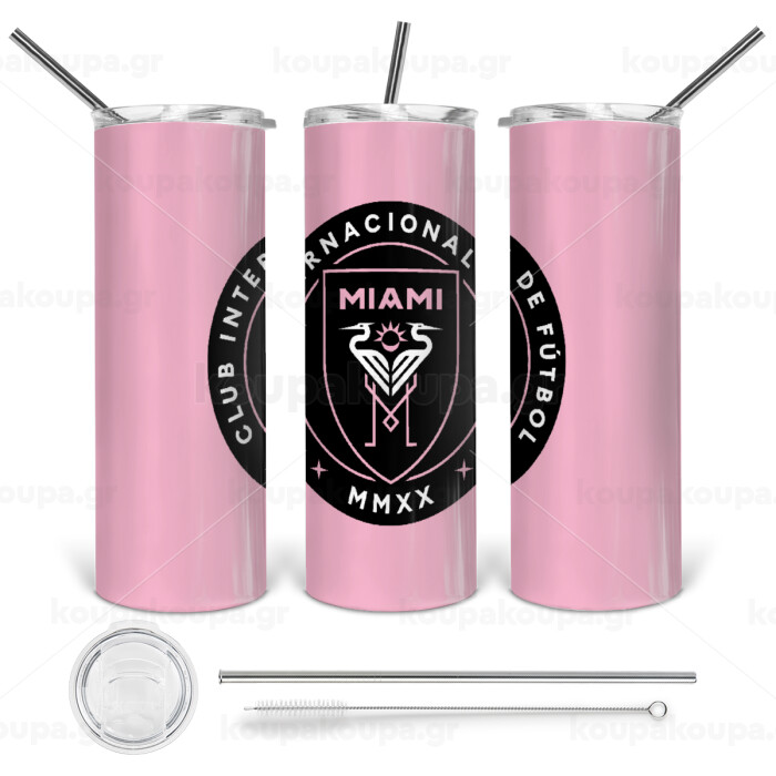 Inter Miami CF, Tumbler stainless steel 600ml, with metal straw & cleaning brush