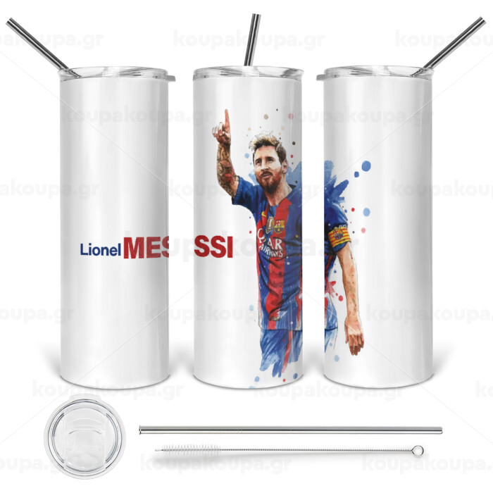 Lionel Messi, Tumbler stainless steel 600ml, with metal straw & cleaning brush