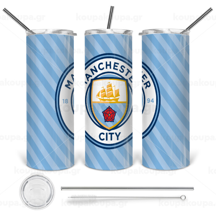 Manchester City FC , Tumbler stainless steel 600ml, with metal straw & cleaning brush