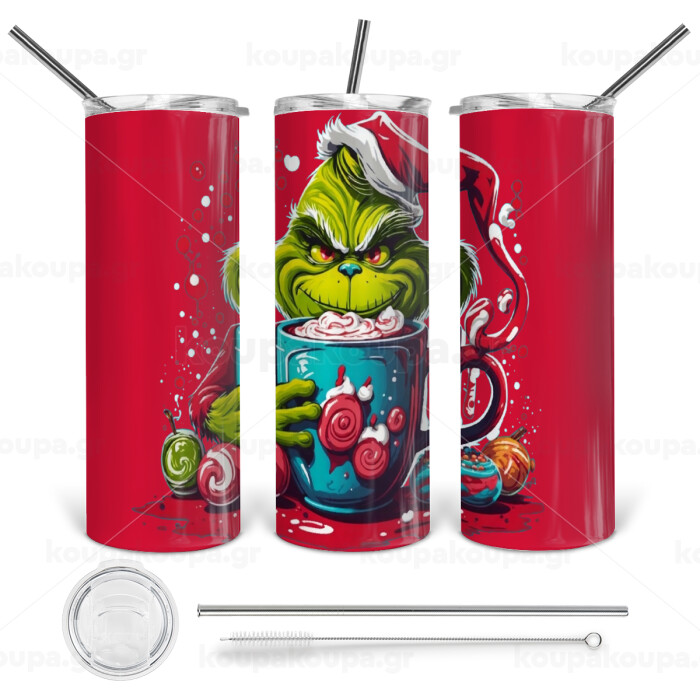 Giggling Grinchy Galore, Tumbler stainless steel 600ml, with metal straw & cleaning brush