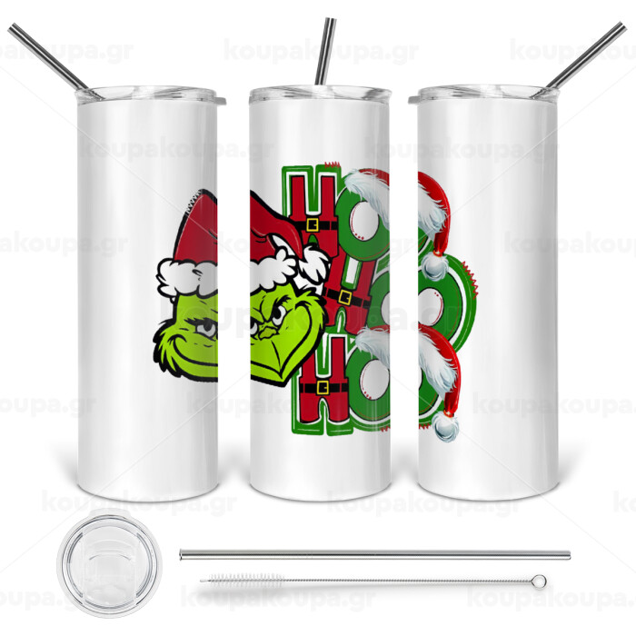 Grinch ho ho ho, Tumbler stainless steel 600ml, with metal straw & cleaning brush