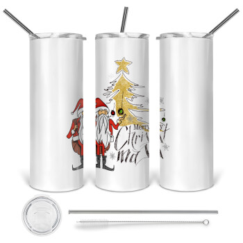 Santa Claus gold, Tumbler stainless steel 600ml, with metal straw & cleaning brush