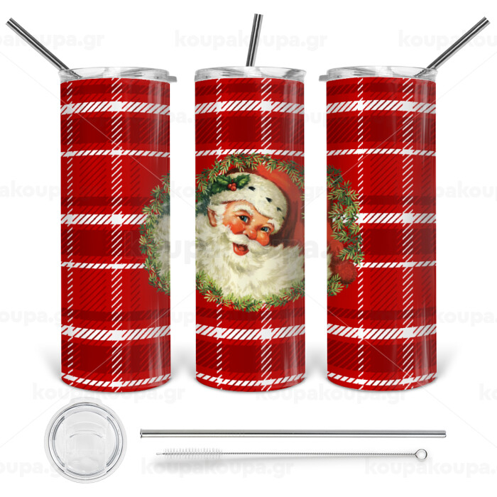 Santa Claus, Tumbler stainless steel 600ml, with metal straw & cleaning brush
