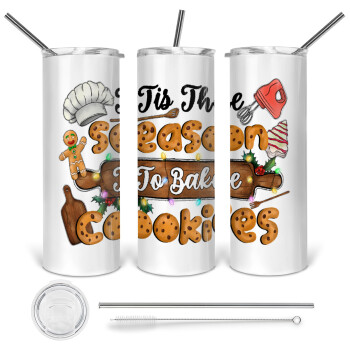 Tis The Season To Bake Cookies, Tumbler stainless steel 600ml, with metal straw & cleaning brush