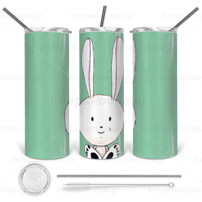 Ο λαγός του πάσχα, Tumbler stainless steel 600ml, with metal straw & cleaning brush