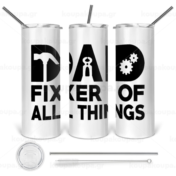 DAD, fixer of all thinks, Tumbler stainless steel 600ml, with metal straw & cleaning brush