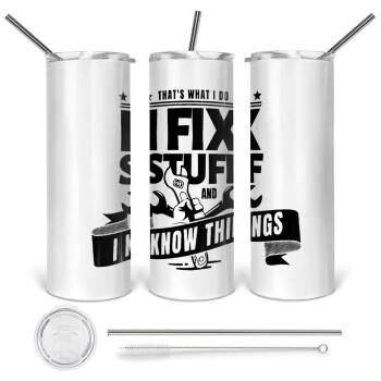 I fix stuff, Tumbler stainless steel 600ml, with metal straw & cleaning brush