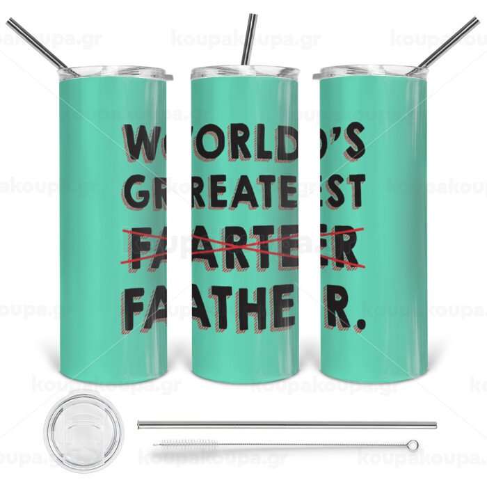 World's greatest farter, Tumbler stainless steel 600ml, with metal straw & cleaning brush