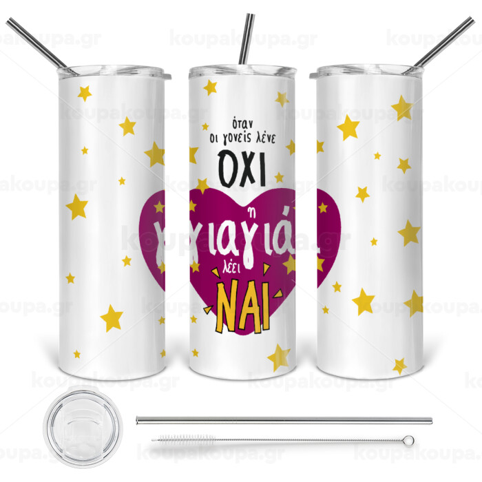 Όταν οι γονείς λένε ΟΧΙ, η γιαγιά λέει ΝΑΙ, Tumbler stainless steel 600ml, with metal straw & cleaning brush