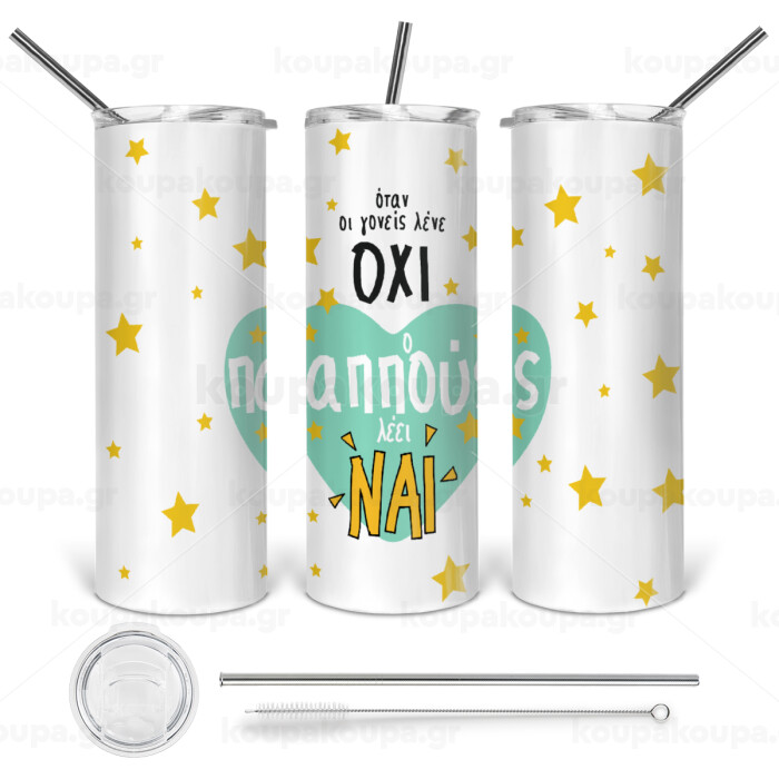 Όταν οι γονείς λένε ΟΧΙ, ο παππούς λέει ΝΑΙ, Tumbler stainless steel 600ml, with metal straw & cleaning brush