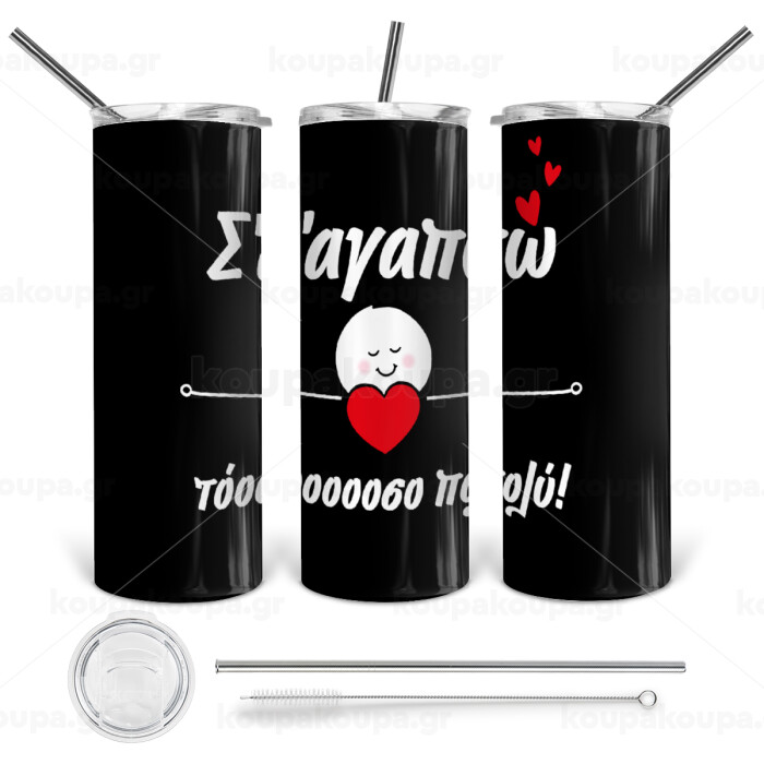 Σ΄αγαπώ τόοοοσο πολύ (Κορίτσι)!!!, Tumbler stainless steel 600ml, with metal straw & cleaning brush