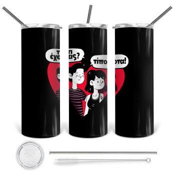 Τι έχεις? Τίποτα!, Tumbler stainless steel 600ml, with metal straw & cleaning brush