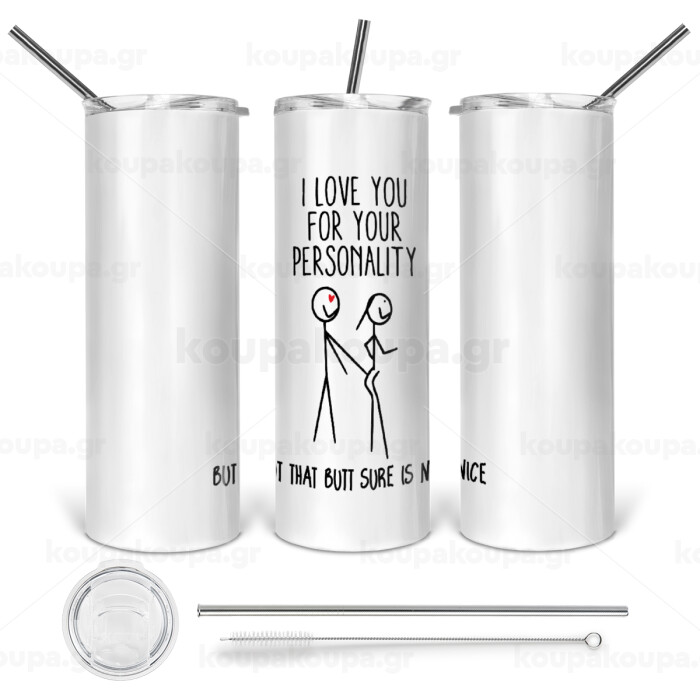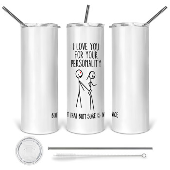 I Love you for your personality, Tumbler stainless steel 600ml, with metal straw & cleaning brush