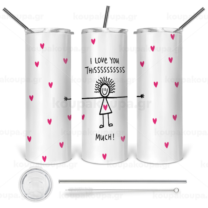 I Love you thissss much..., Tumbler stainless steel 600ml, with metal straw & cleaning brush