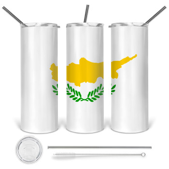 Cyprus flag, Tumbler stainless steel 600ml, with metal straw & cleaning brush