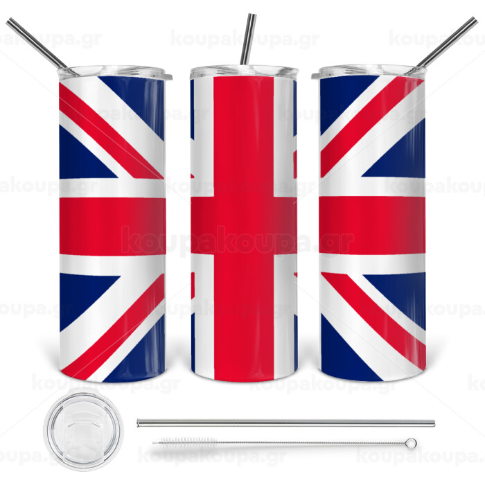 England flag, Tumbler stainless steel 600ml, with metal straw & cleaning brush
