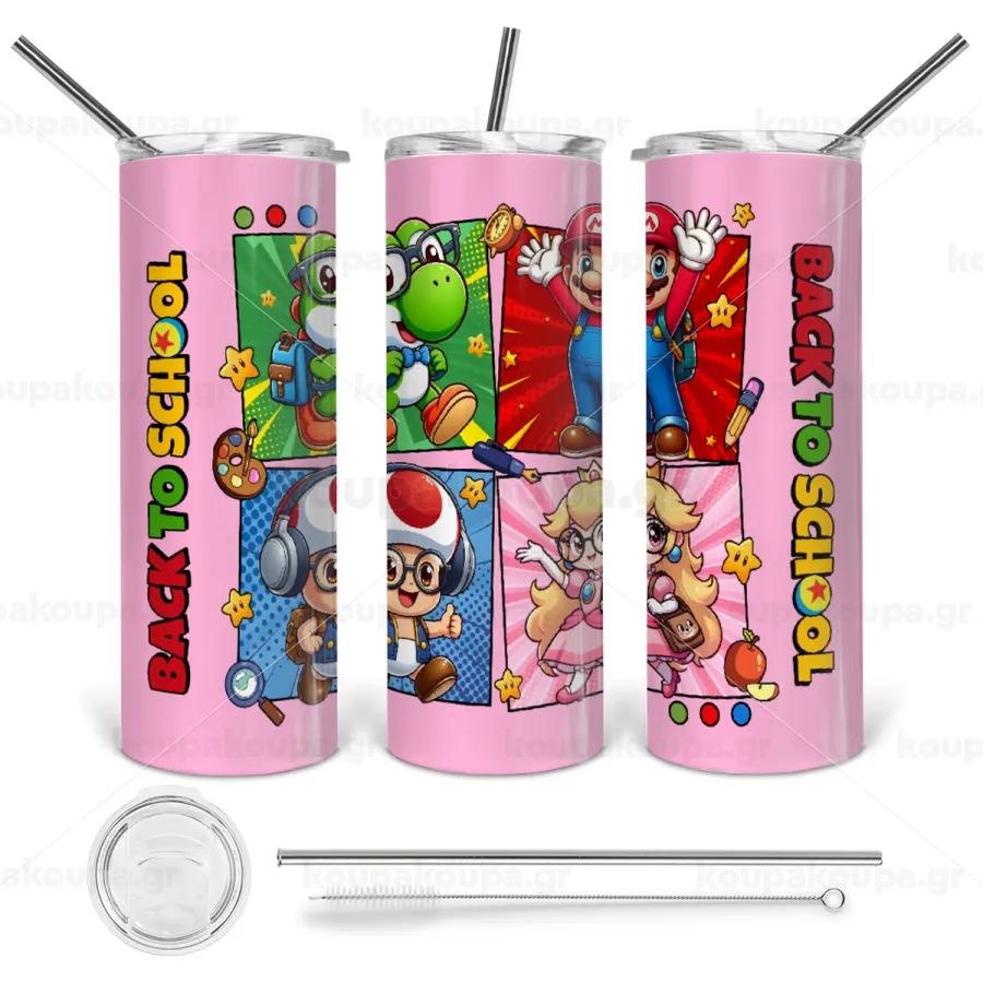 Back to the School Mario & Friends, Tumbler stainless steel 600ml, with metal straw & cleaning brush
