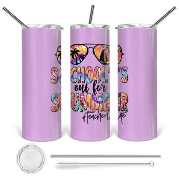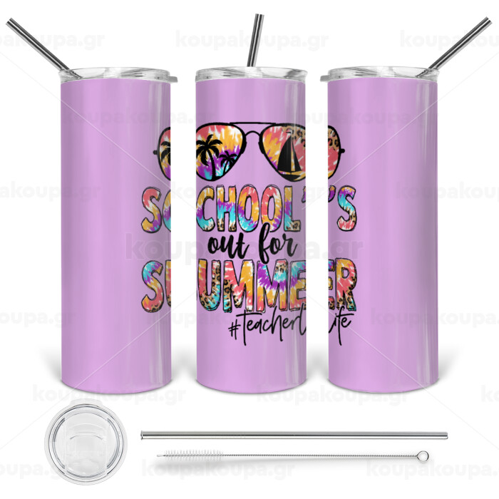 School's Out For Summer Teacher Life, Tumbler stainless steel 600ml, with metal straw & cleaning brush