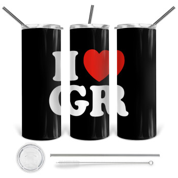I Love GR, Tumbler stainless steel 600ml, with metal straw & cleaning brush