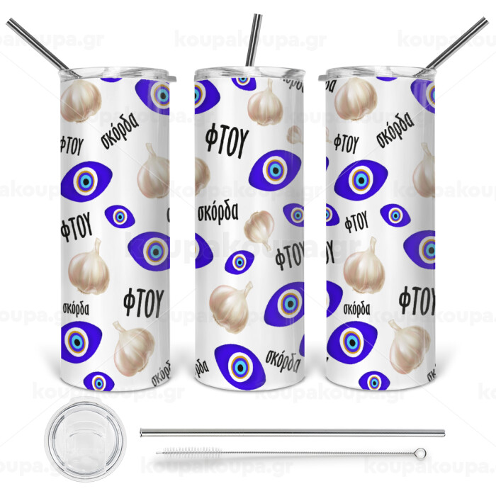 Φτου, φτου, σκόρδα!!!, Tumbler stainless steel 600ml, with metal straw & cleaning brush