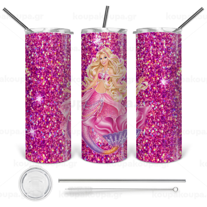 Barbie mermaid , Tumbler stainless steel 600ml, with metal straw & cleaning brush