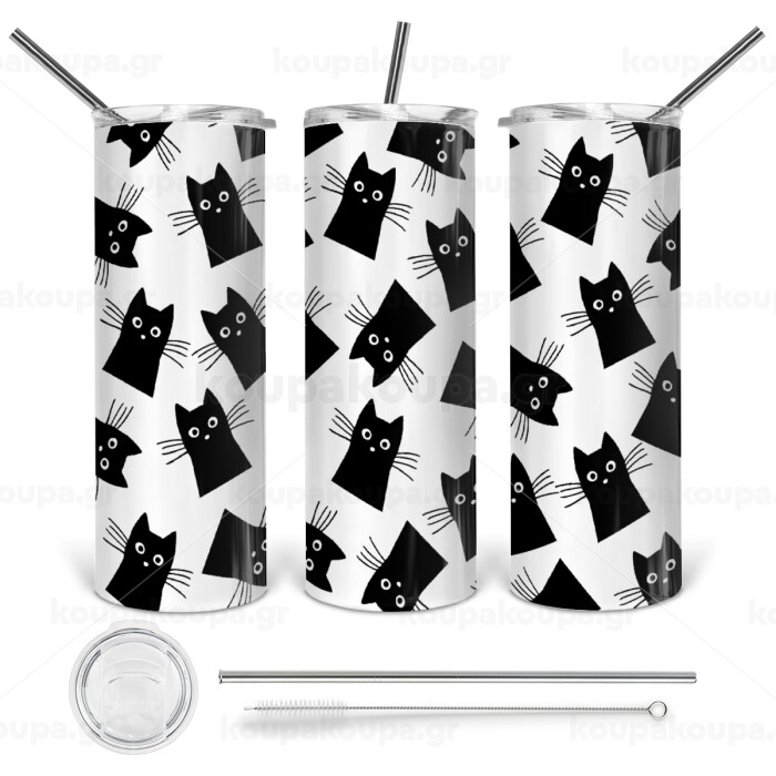 Black Cat, Tumbler stainless steel 600ml, with metal straw & cleaning brush