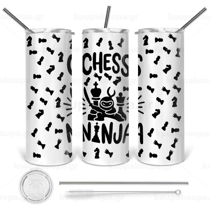 Chess ninja, Tumbler stainless steel 600ml, with metal straw & cleaning brush