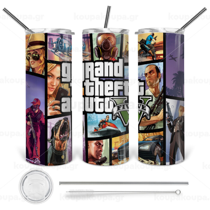 GTA V, Tumbler stainless steel 600ml, with metal straw & cleaning brush