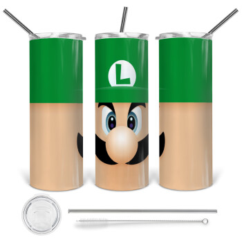 Luigi flat, Tumbler stainless steel 600ml, with metal straw & cleaning brush