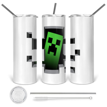 Minecraft creeper, Tumbler stainless steel 600ml, with metal straw & cleaning brush
